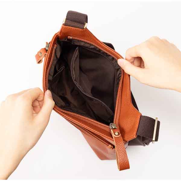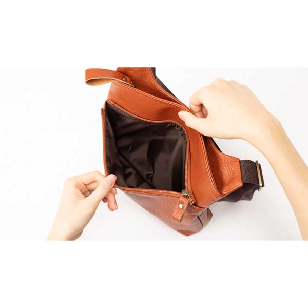 柔らかなレザーが心地よい軽量ショルダー。