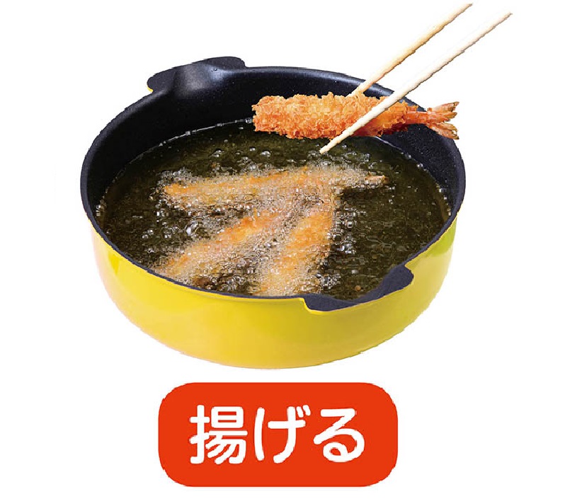 ちょうど良いサイズで使いやすく、イエローのカラーがキッチンを明るくしてくれて、調理後もそのまま食卓で使えます。